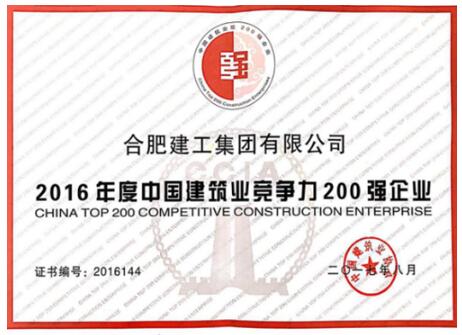 11月26日,2016年度中國建筑業雙200強企業發布會在南京召開,合肥建工再度榮獲中國建筑業競爭力200強企業榮譽稱號,位列第144名。